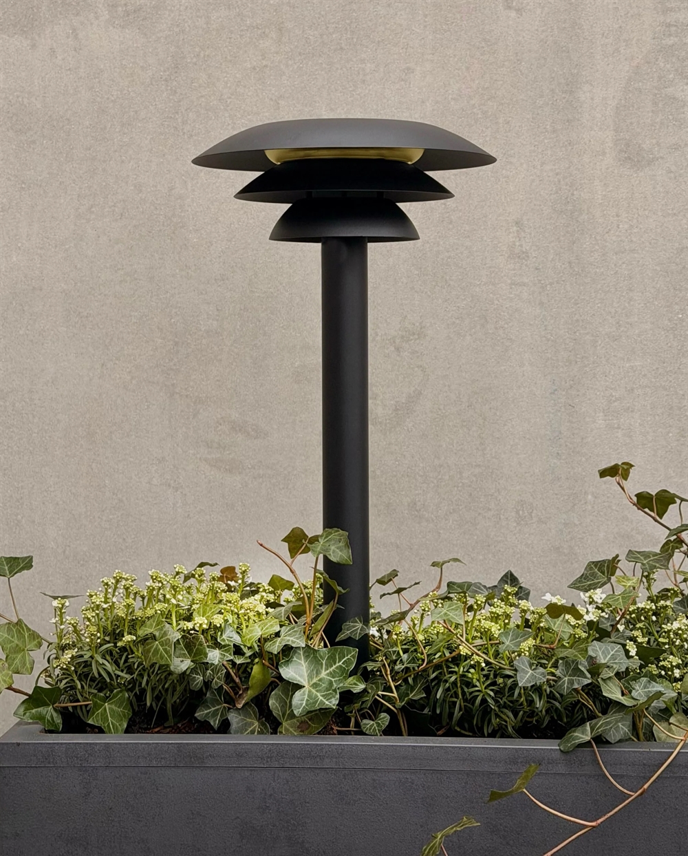 Sokkelarmatuur DL25 Solar is een klassieke en stijlvolle buitenlamp die wordt opgeladen via zonne-energie. Wanneer de lamp aan staat, zorgt een sensor ervoor dat het licht automatisch aangaat wanneer het donker wordt en uitgaat wanneer het licht wordt. De lamp is gemaakt van zwart metaal en heeft drie kappen die zorgen voor aangenaam, niet-verblindend licht. Dankzij de grondpin is het eenvoudig om de draadloze lamp in de tuin of oprit te plaatsen.