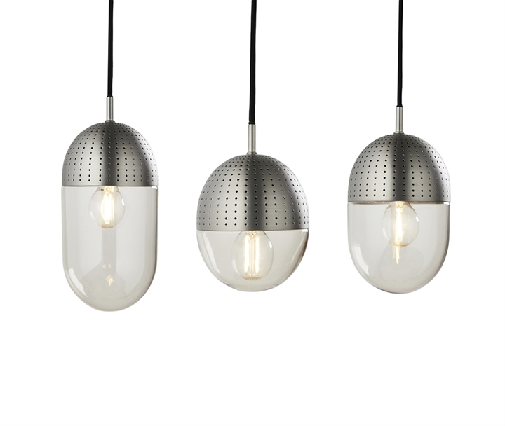 De Dot hanglamp bestaat uit een glazen kap, waarbij het bovenste deel van de kap is bedekt met een geperforeerde buitenkap. De kleine gaatjes in het bovenste deel van de kap zorgen voor een zachte en rustige uitstraling, omdat slechts een deel van het licht erdoorheen kan schijnen. De hanglamp is ontworpen om een gezellige sfeer te creëren en is daarom ook ideaal om in een hoek van de woonkamer op te hangen.