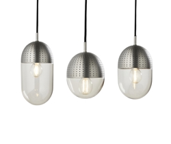 De Dot hanglamp bestaat uit een glazen kap, waarbij het bovenste deel van de kap is bedekt met een geperforeerde bovenkap. De kleine gaatjes in het bovenste deel van de kap zorgen voor een zachte en rustige uitstraling, omdat slechts een deel van het licht erdoorheen kan schijnen. De hanglamp is ontworpen om een gezellige sfeer te creëren en is daarom ook ideaal om in een hoek van de woonkamer op te hangen.