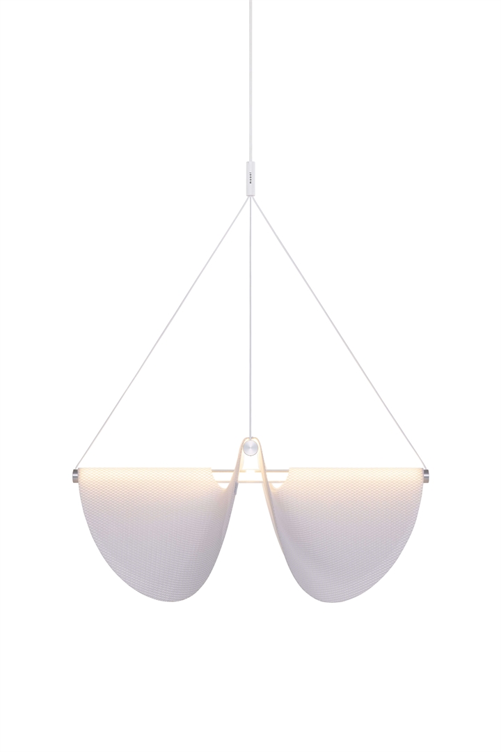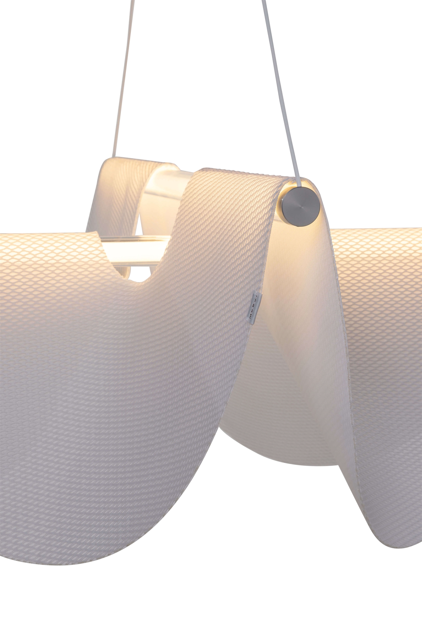 Drape Light 78 daagt de klassieke opvattingen over verlichting uit. De structuur van de lamp met twee LED-buizen biedt een stabiel frame, terwijl de gedrapeerde organische polyesterscherm door middel van zwaartekracht een fantastische visuele effect creëert in de interactie tussen licht en schaduw.