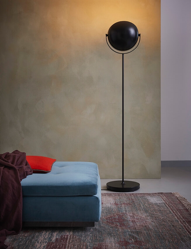 Eclips is een sfeervolle uplight en downlight vloerlamp. De lampenkap van de vloerlamp kan eenvoudig worden aangepast, zodat deze aan elke behoefte voldoet. De twee halve bollen kunnen 360° draaien, waardoor het mogelijk is om de gewenste verlichting te creëren – zowel een smalle lichtstraal, breed licht als een volledige verduistering.