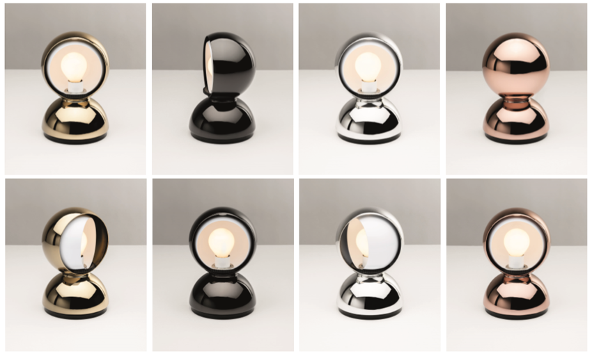 In 1965 ontwierp Vico Magistretti de Eclisse tafellamp/wandlamp. De lamp won de designprijs Compasso d'Oro in 1967 en heeft een slim ontwerp met een handmatige dimmer, waardoor een interne halve bol voor de lichtbron kan worden gedraaid.