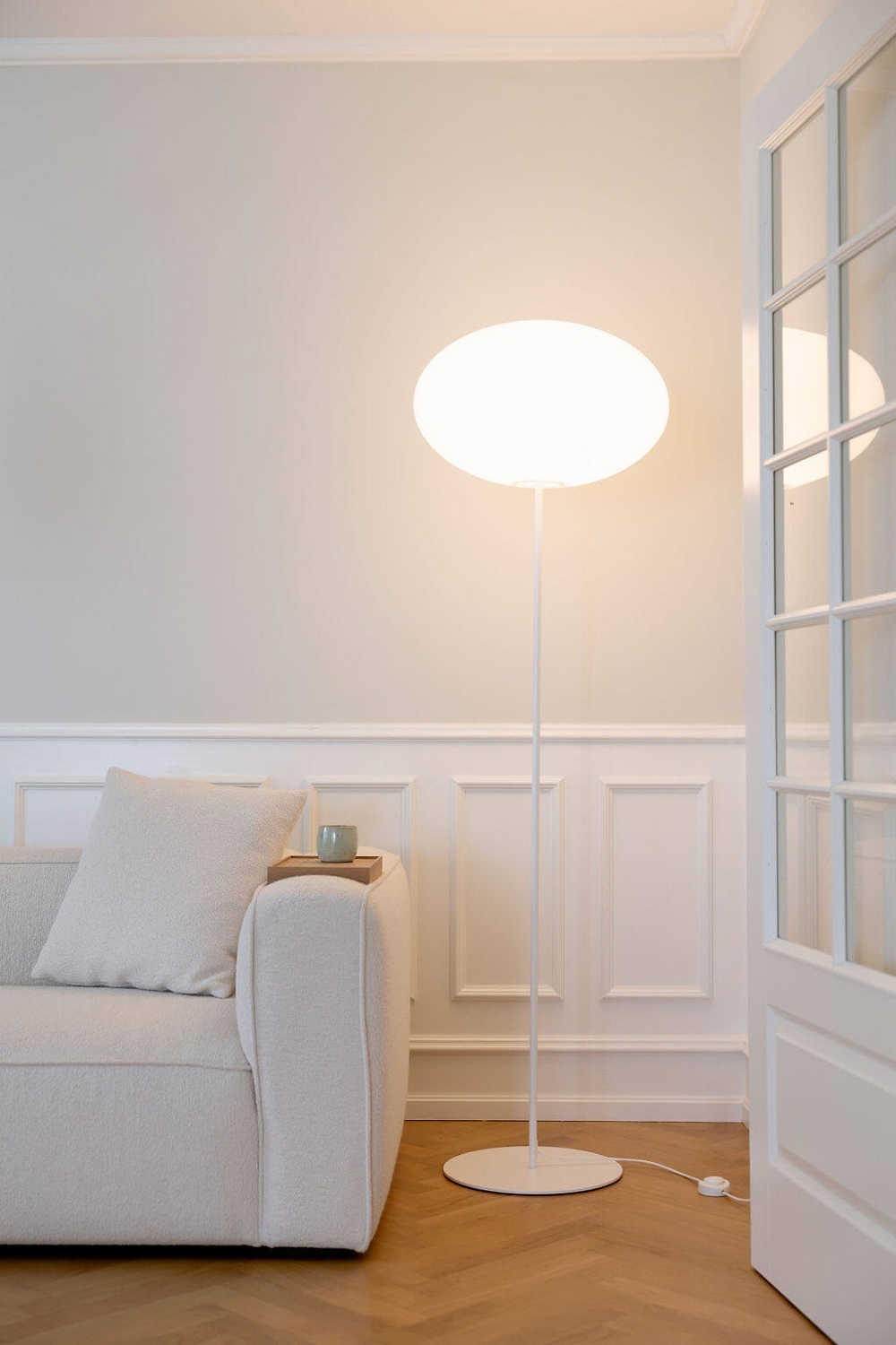 Eggy Pin Vloer is een elegante en sculpturale vloerlamp met een zacht en aangenaam licht dat niet verblindt