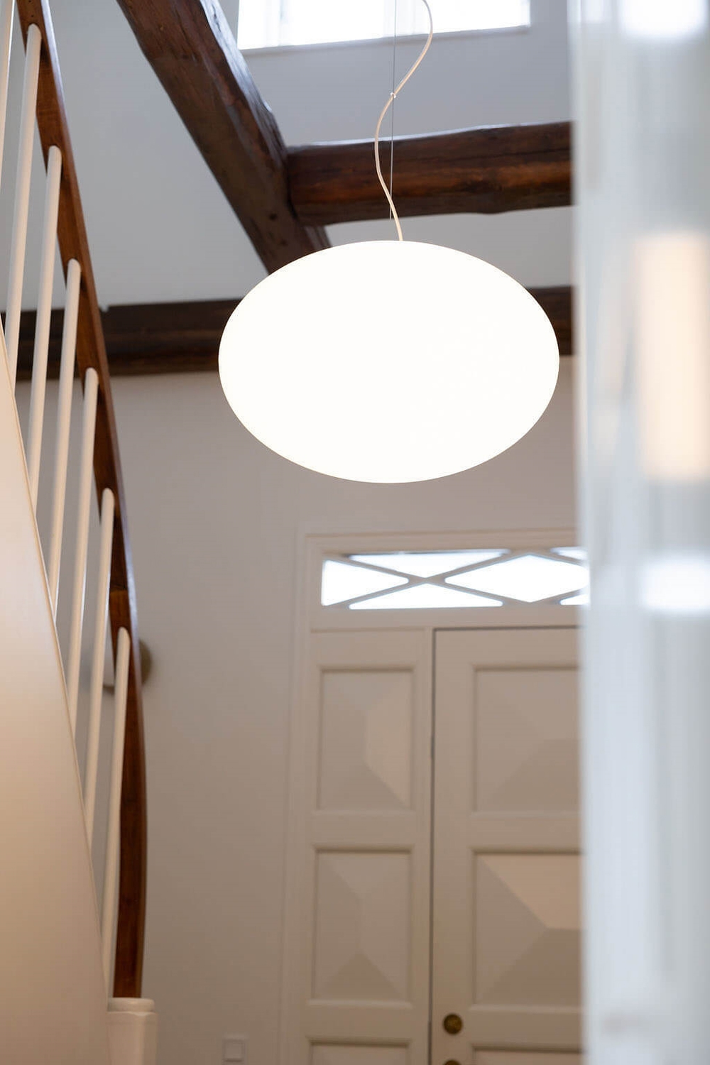 De Eggy Pop Hanglamp is opgehangen aan een staaldraad. Hierdoor krijgt de kabel een losse en lichte, zwevende uitstraling.