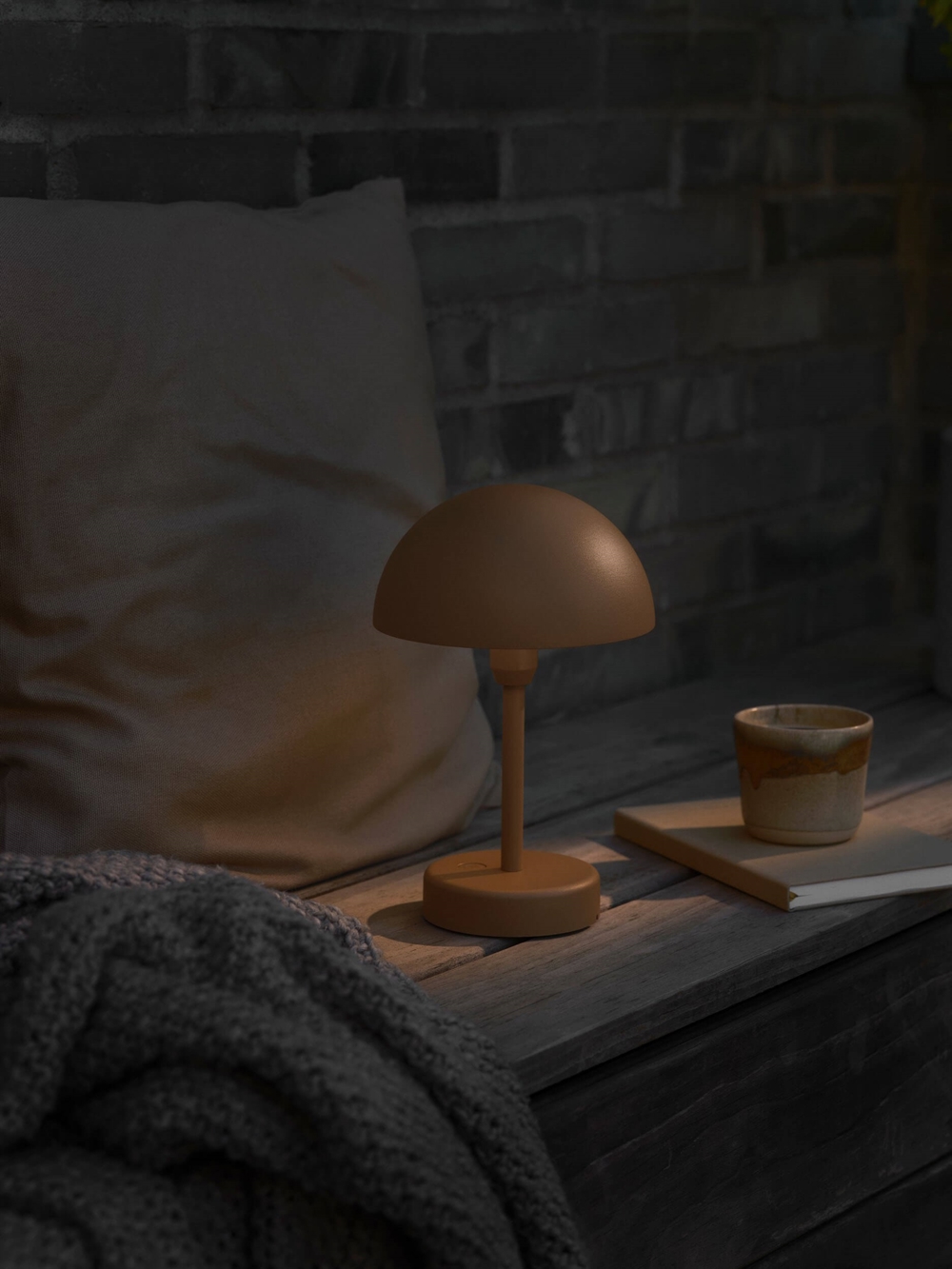 Ellen To-Go is gemakkelijk mee te nemen en kan zowel binnen als buiten worden gebruikt. De schattige batterijlamp heeft eenvoudige en zachte vormen, die een minimalistische Scandinavische uitstraling creëren. De lamp is verkrijgbaar in verschillende kleuren en kan in drie stappen worden gedimd met Moodmaker™, zodat de lichtsterkte kan worden aangepast aan de gewenste sfeer. Op volle sterkte kan de batterijlamp 4 uur branden, op middelste sterkte 6 uur en op laagste sterkte tot 12 uur. Een volledige oplading duurt 3 uur met de meegeleverde laadbasis.