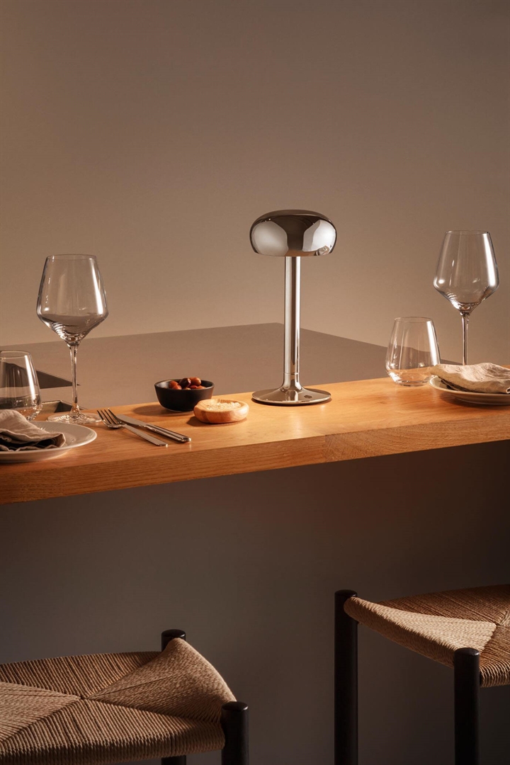 Please wait to be seated Emendo LED batterijlamp / tafellamp, chroom - ontworpen door Hans Thyge & Co ApS