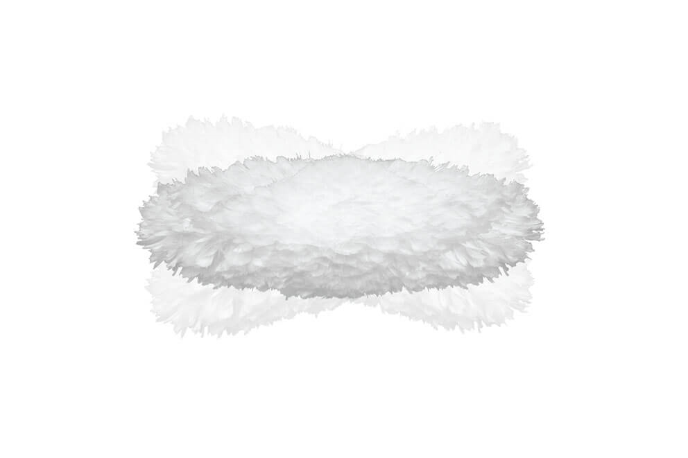 De lampenkap is gemaakt van natuurlijke ganzendons en heeft een elegant ontwerp dat een warm licht creëert. De vorm en de zachte veren vormen een verfijnd element in elke ruimte. Gebruik bijvoorbeeld de ovale kap als hanglamp boven de eettafel of als een mooie vloerlamp of tafellamp, alleen of meerdere samen.