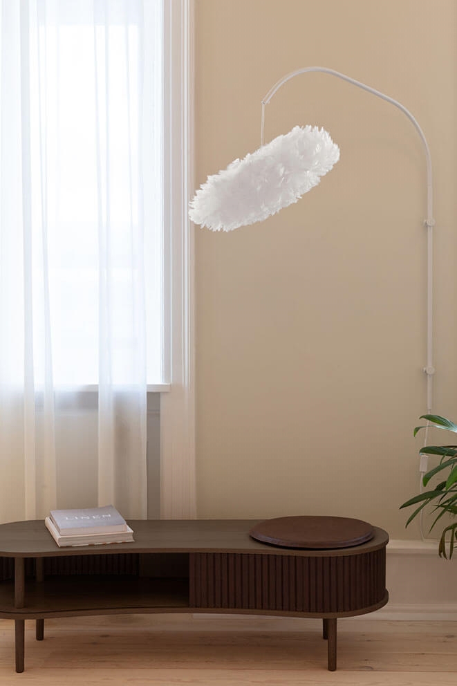 Deze verenlamp is gemaakt van natuurlijke ganzendons en heeft een elegant ontwerp dat een warm licht creëert. De vorm en de zachte veren zullen een verfijnd element in elke ruimte zijn. Gebruik bijvoorbeeld de ovale kap als hanglamp boven de eettafel of als een prachtige vloerlamp of tafellamp alleen of meerdere samen.