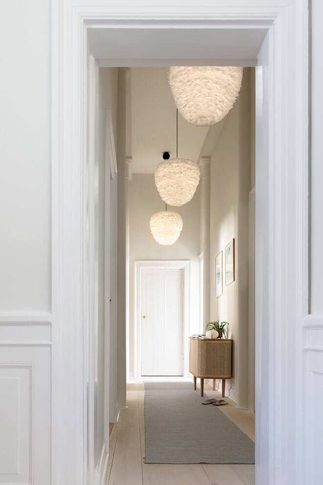 Eos Evia medium is een lampenkap in de vorm van een bijenkorf en is gemaakt van natuurlijke ganzendons. De kap heeft een elegant uiterlijk dat doet denken aan luchtige wolken aan de hemel en zal met zijn zachte veren een verfijnd element zijn in elke ruimte. Gebruik de kap bijvoorbeeld als hanglamp boven de eettafel, in de hal of als een prachtige vloerlamp of tafellamp alleen of meerdere samen in de woonkamer.