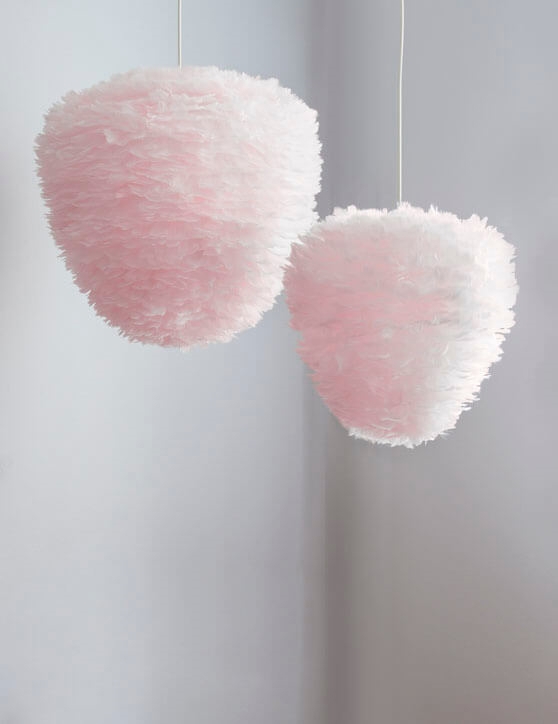 Eos Evia medium is een lampenkap in de vorm van een bijenkorf en is gemaakt van natuurlijke ganzveren. De kap heeft een elegant uiterlijk dat doet denken aan luchtige wolken aan de hemel en zal met zijn zachte veren een verfijnd element zijn in elke ruimte. Gebruik de kap bijvoorbeeld als hanglamp boven de eettafel, in de hal of als een prachtige wandlamp, vloerlamp of tafellamp alleen of meerdere samen in de woonkamer.