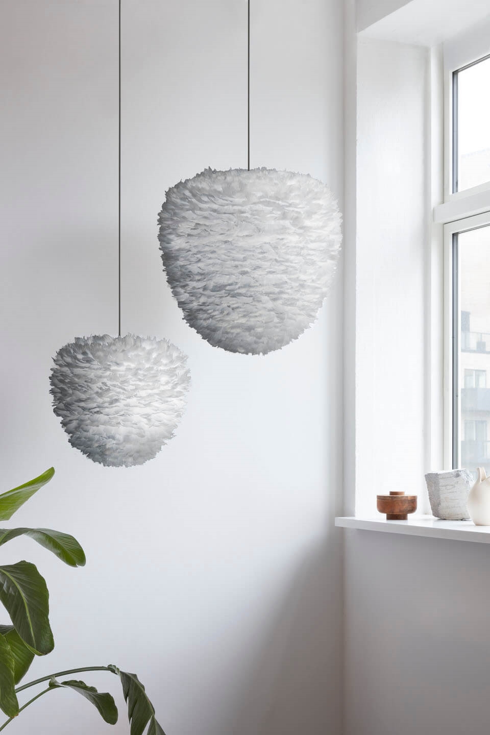 Eos Evia medium is een lampenkap in de vorm van een bijenkorf en is gemaakt van natuurlijke ganzendons. De kap heeft een elegant uiterlijk dat doet denken aan luchtige wolken aan de hemel en zal met zijn zachte veren een verfijnd element in elke ruimte zijn. Gebruik de kap bijvoorbeeld als hanglamp boven de eettafel, in de hal of als een prachtige wandlamp, vloerlamp of tafellamp alleen of meerdere samen in de woonkamer.