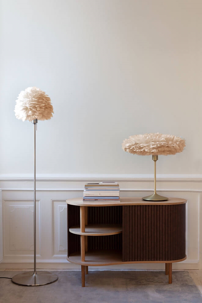 Eos-kappen zijn verkrijgbaar in verschillende vormen, maten en kleuren en als plafond- of wandlamp. De lampenkap moet worden gecombineerd met een ophanging of een standaard, die apart wordt verkocht. Kies bijvoorbeeld de E27-ophangingen Cannonball, Cannonball Cluster 2 en 3, Cord Set, Cord Set Pro of Rosette van Umage voor Eos Evia mini. De wandophangingen Willow, vloer- of tafelstandaards Tripod of Santé wandbasis en Santé vloer- of tafelstandaards passen ook perfect bij Eos Evia mini.