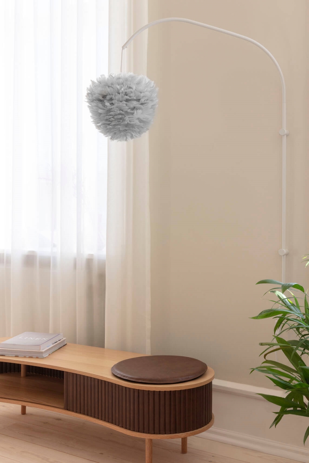 Eos-kap is verkrijgbaar in verschillende vormen, maten en kleuren en als plafond- of wandlamp. De lampenkap moet worden gecombineerd met een ophanging of standaard, die apart wordt verkocht. Kies bijvoorbeeld E27-ophangingen Cannonball, Cannonball Cluster 2 en 3, Cord Set, Cord Set Pro of Rosette van Umage voor Eos Evia mini. De wandophangingen Willow, vloer- of tafelstandaards Tripod of Santé wandbasis en Santé vloer- of tafelstandaards passen ook perfect bij Eos Evia mini.
