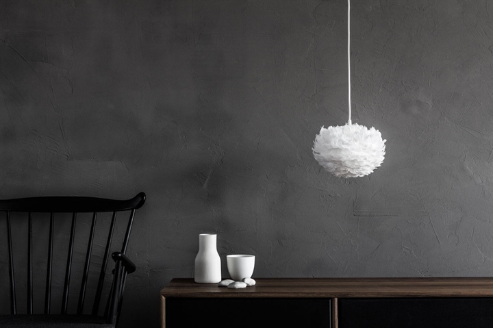 Deze verenlamp is verkrijgbaar in verschillende vormen, maten en kleuren en als plafond- of wandlamp. De lampenkap moet worden gecombineerd met een ophanging of een standaard, die apart wordt verkocht. Kies bijvoorbeeld E27-ophangingen Cannonball, Cannonball Cluster 2 en 3, Cord Set, Cord Set Pro of Rosette van Umage voor Eos micro. De wandophangingen Willow, Tripod vloer- of tafelstandaards of de Santé wandbasis en Santé vloer- of tafelstandaards zijn ook perfect voor Eos micro.