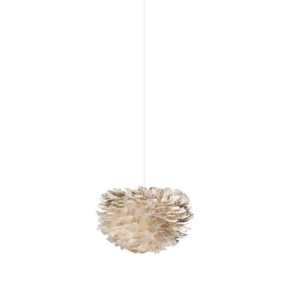 Eos micro is een unieke handgemaakte lampenkap gemaakt van natuurlijke ganzendons. De kap heeft een elegant uiterlijk dat doet denken aan luchtige wolken aan de hemel en zal met zijn zachte veren een verfijnd element in elke ruimte zijn. Gebruik de kap bijvoorbeeld als hanglamp boven de eettafel of als een prachtige wandlamp, vloerlamp of tafellamp alleen of meerdere samen in de woonkamer.