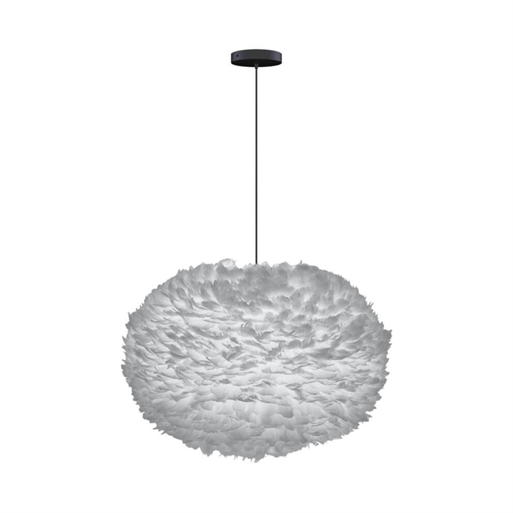 Eos X-large is een unieke handgemaakte lampenkap gemaakt van natuurlijke ganzendons. De kap heeft een elegant uiterlijk dat doet denken aan luchtige wolken aan de hemel en zal met zijn zachte veren een verfijnd element in elke ruimte zijn. Gebruik de kap bijvoorbeeld als hanglamp boven de eettafel of als een prachtige vloerlamp alleen of meerdere samen in de woonkamer.