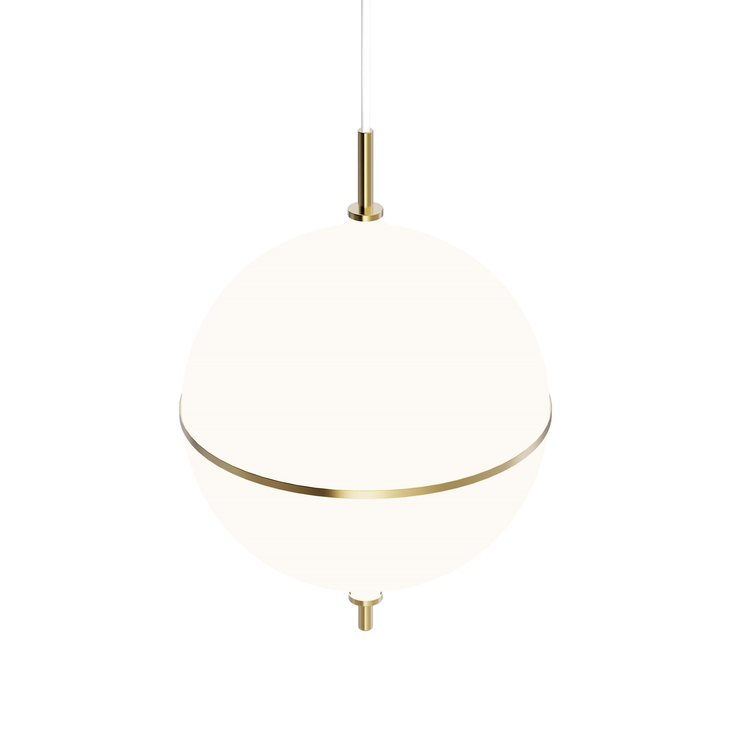 De hanglamp Eternal Moonlight is geïnspireerd door de mystiek van de maan en voegt een verfijnde touch toe aan het interieur. De bolvormige kap van mondgeblazen opaalglas verspreidt een zacht licht en wordt gescheiden door een subtiele messing band, die de halve maan symboliseert.