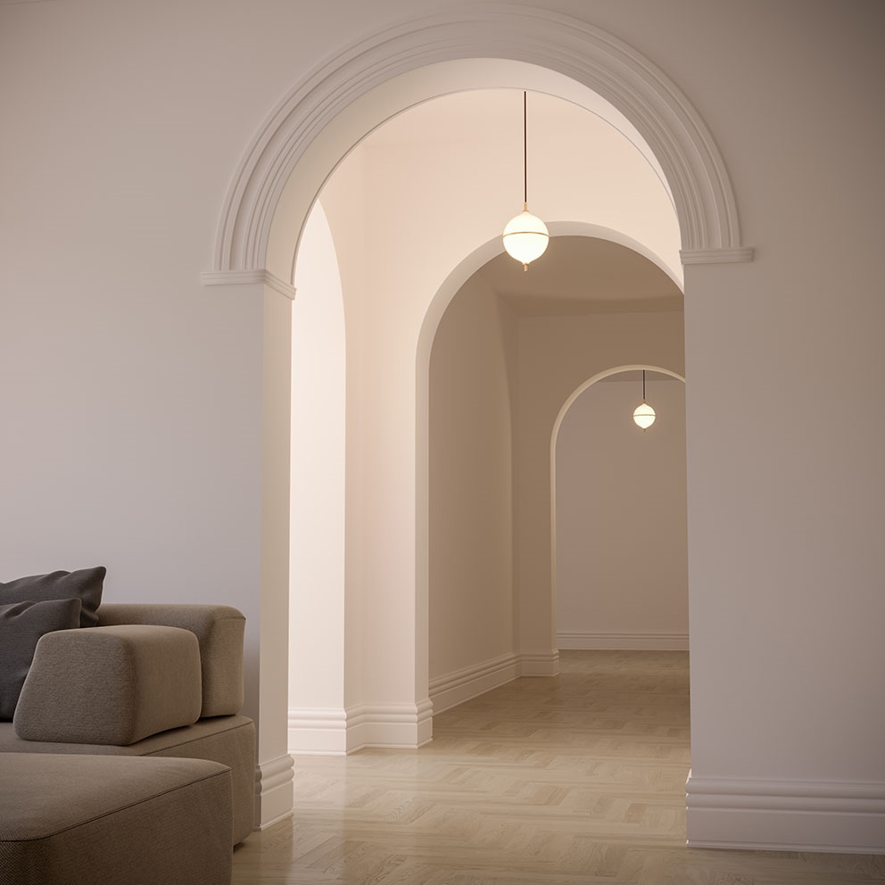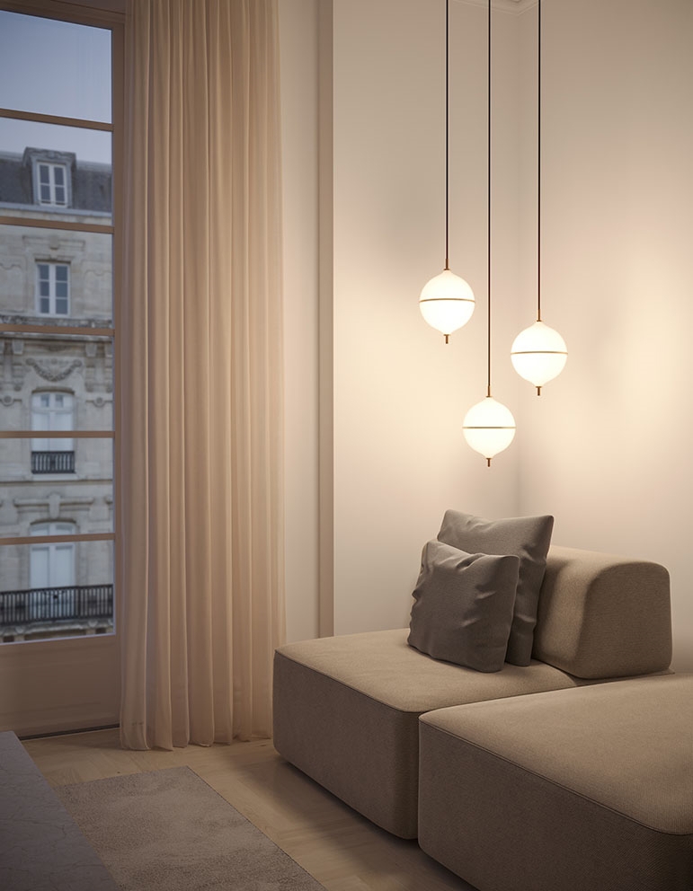 De hanglamp Eternal Moonlight is geïnspireerd door de mystiek van de maan en voegt een verfijnde touch toe aan het interieur. De bolvormige kap van mondgeblazen opaalglas verspreidt een zacht licht en wordt gescheiden door een subtiele messing band, die de halve maan symboliseert.