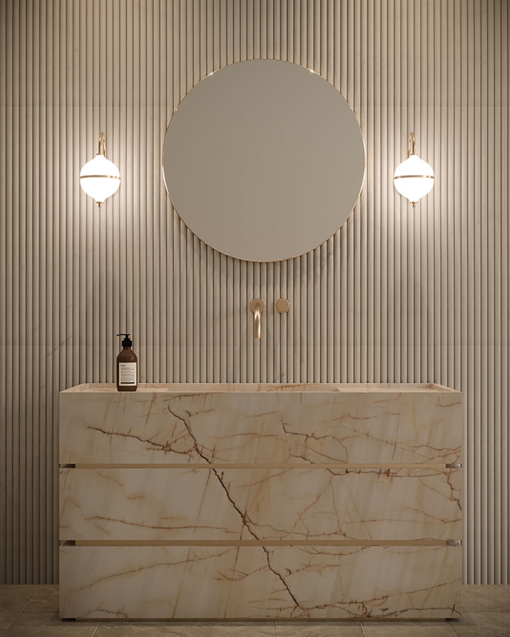De wandlamp Eternal Moonlight is geïnspireerd door de mystiek van de maan en voegt een verfijnde touch toe aan het interieur. De bolvormige kap van mondgeblazen opaalglas verspreidt een zacht licht en wordt gescheiden door een subtiele messing band die de halve maan symboliseert.