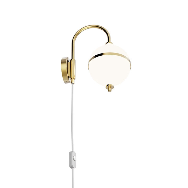 Het ontwerp is handgemaakt van messing en opaalglas en is een tijdloze combinatie van Scandinavisch minimalisme en moderne elegantie, waarbij de witte kabel de lichte en harmonieuze uitstraling van de lamp benadrukt. Een uitstekende keuze als bedlamp of verlichting voor de woonkamer of hal. Dankzij de IP44-classificatie kan de lamp ook bij de spiegel in de badkamer worden gemonteerd.