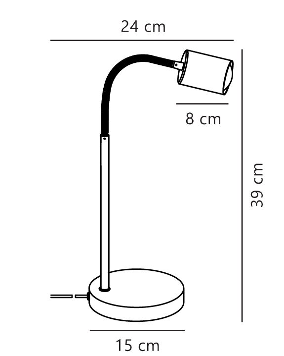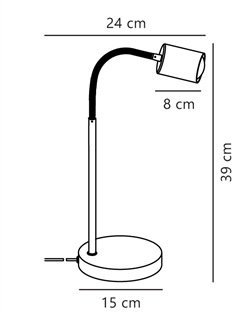 Afmetingen: H39-55 cm, kap: Ø5,5 x H8 cm, voet: Ø15 cm