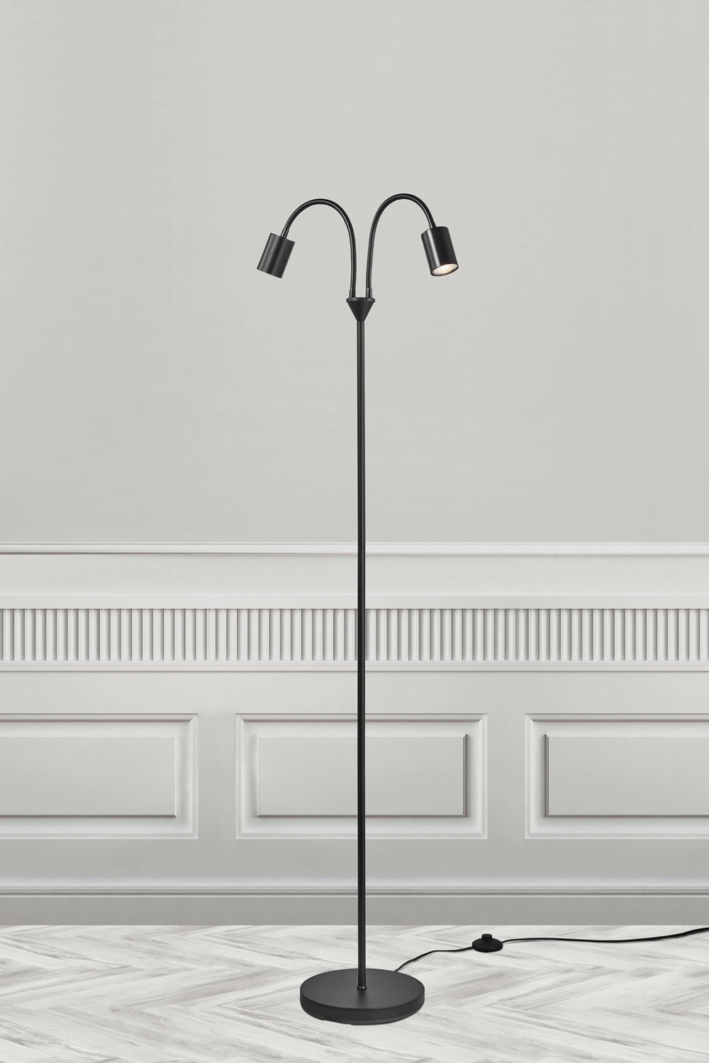 De stijlvolle, elegante en eenvoudige vloerlamp past in veel interieurs en combineert functionaliteit met een prachtig design. Hij bestaat uit twee flexibele armen, waardoor het licht naar behoefte kan worden gericht. Daarnaast is de lampenkap ook verstelbaar, wat de lamp essentieel maakt als leeslamp.