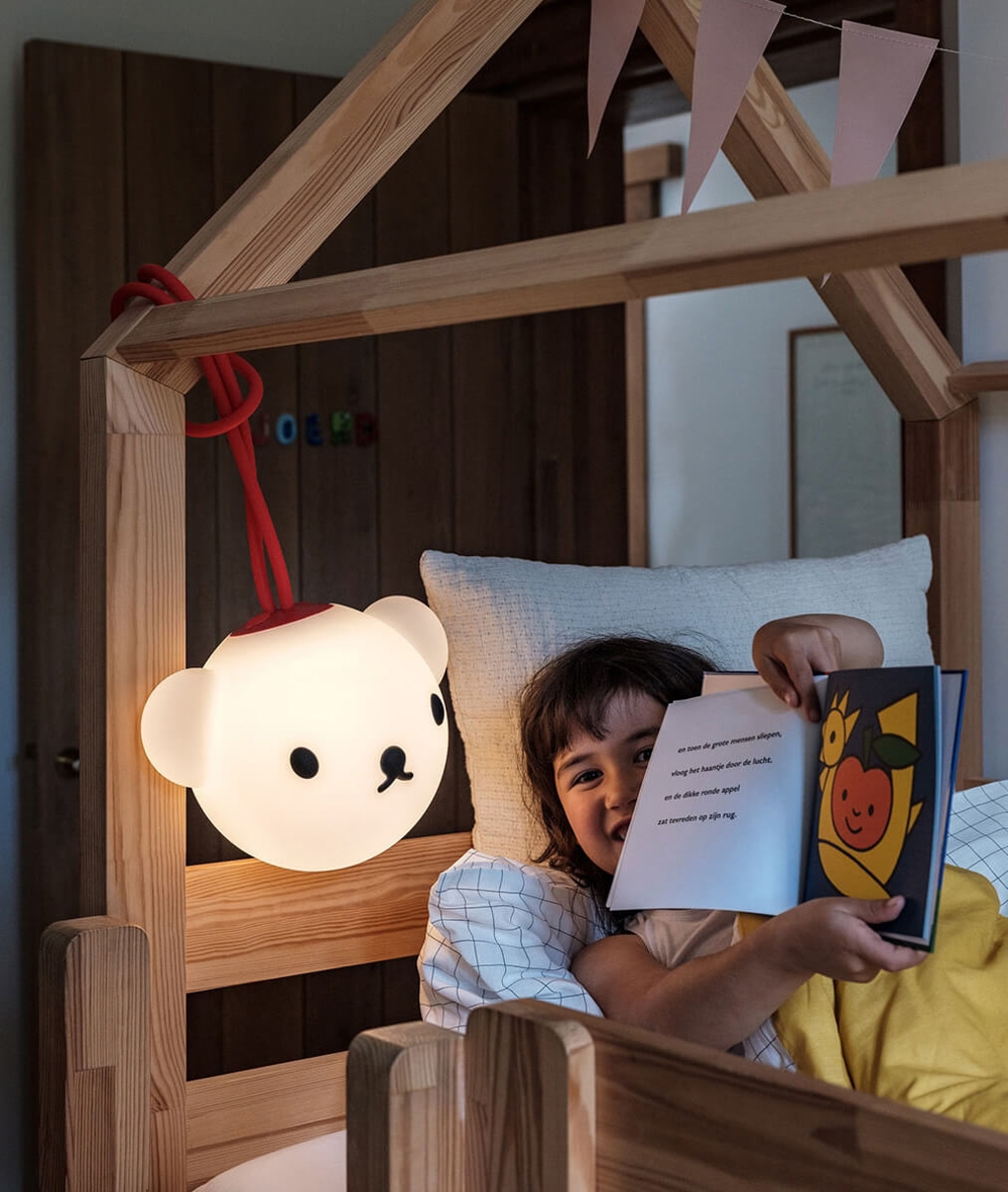De draagbare Boris-lamp zal een hit zijn voor zowel kleine als grote fans van het wereldberoemde universum met het kleine witte konijntje Nijntje en zijn berenvriend Boris. De lamp voegt een speels tintje toe aan de kinderkamer of elke andere ruimte en