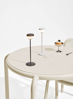 Cheerio tafellamp voegt een extra vleugje gezelligheid toe wanneer je samenkomt met vrienden of familie. De batterijlamp is oplaadbaar en kan dankzij het draadloze ontwerp overal worden gebruikt, zowel binnen als buiten. Met zijn zware stalen basis staat Cheerio stabiel en stevig. Gebruik de LED-lamp bijvoorbeeld op je eettafel, keukentafel, salontafel, nachtkastje of buiten op je balkon of in je tuin.