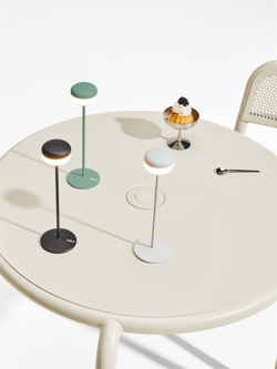 Cheerio tafellamp voegt een extra vleugje gezelligheid toe wanneer je samenkomt met vrienden of familie. De batterijlamp is oplaadbaar en kan dankzij het draadloze ontwerp overal worden gebruikt, zowel binnen als buiten. Met zijn zware stalen basis staat Cheerio stabiel en stevig. Gebruik de LED-lamp bijvoorbeeld op je eettafel, keukentafel, salontafel, nachtkastje of buiten op je balkon of in je tuin.