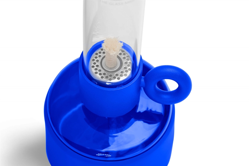 Flamtastique XS is een stijlvolle olielamp voor binnengebruik. De lamp is geïnspireerd op een traditionele olielamp en bestaat uit een slanke glazen buis om de vlam af te schermen en een voet die als oliereservoir fungeert. Het transparante deel van de voet zorgt ervoor dat je altijd kunt zien hoeveel lampolie er nog over is. De lont wordt naar voren gedraaid via de hendel aan de zijkant van de lamp.
