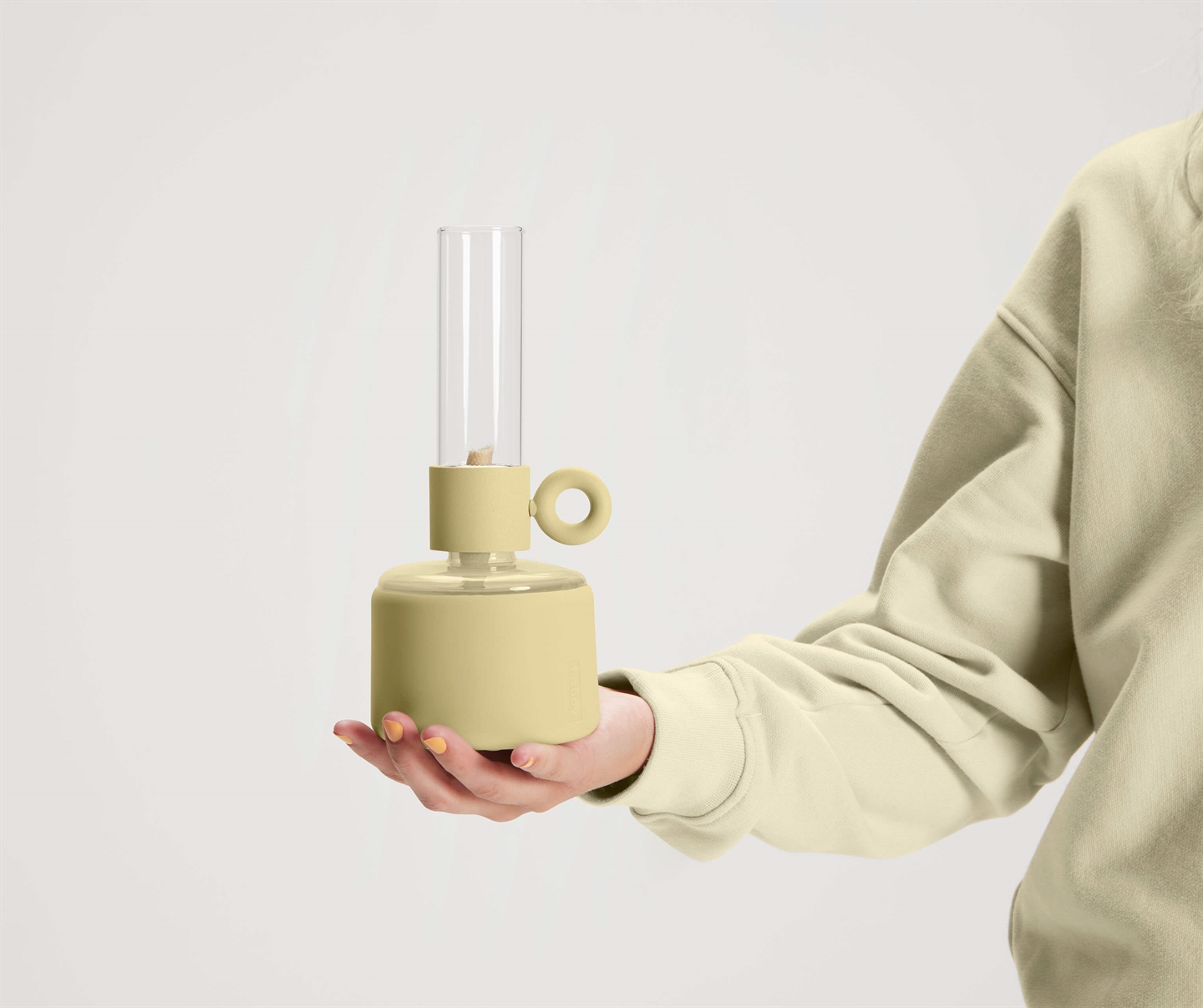 Flamtastique XS in deze bleke gele kleur is een prachtige olielamp voor gebruik binnenshuis. De lamp is geïnspireerd op een traditionele olielamp en bestaat uit een slanke glazen buis om de vlam af te schermen en een voet die als oliecontainer fungeert. Het transparante deel van de voet zorgt ervoor dat je altijd kunt zien hoeveel lampolie er nog over is. De lont wordt naar voren gedraaid via de hendel aan de zijkant van de lamp.