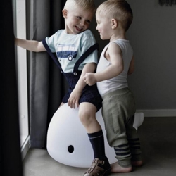 De lamp is verkrijgbaar in 3 verschillende maten, waarvan dit de grootste is. De walvis is gemaakt van hard plastic, zodat kinderen erop kunnen zitten.
