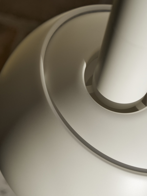 Deze hanglamp met karakteristieke geometrische vormen en een minimalistische uitstraling werd oorspronkelijk gecreëerd in 1963 door de Deense architect en meubelontwerper Finn Juhl en is opnieuw geïntroduceerd door Louis Poulsen in 2025.