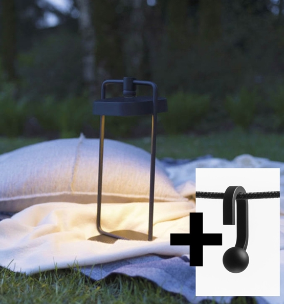 Flai set, klein 1 - bestaat uit lantaarn tafellamp (lichaam en lamp) + haak, zwart