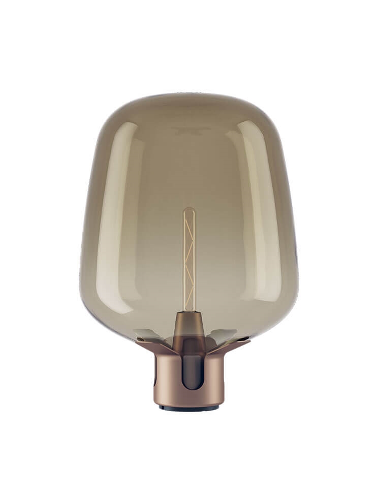 Flar is geïnspireerd door traditionele stormlantaarns met een glazen kap die de lichtbron beschermend omsluit. De getinte kap zorgt voor een zacht licht, waardoor de gloed van de elegante lamp doet denken aan een moderne kaars. De naam Flar is gekozen om te verwijzen naar een intense vlam, een gloed of een uitbarsting van licht.