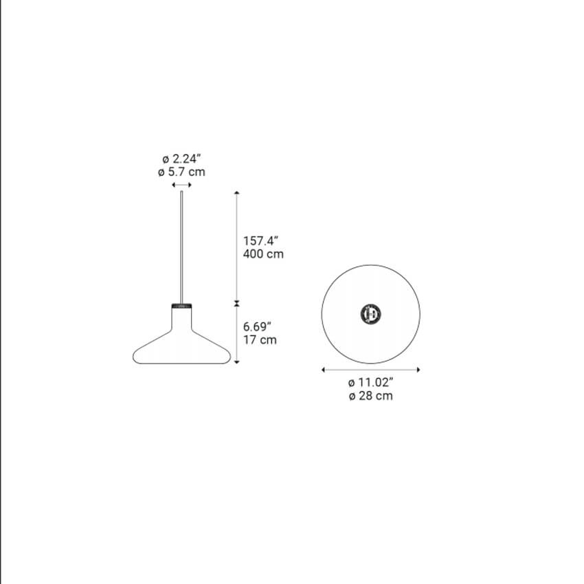 De lamp kan worden gemonteerd met verschillende baldakijnen en gecombineerd met meerdere Flask hanglampen – neem contact met ons op voor meer informatie.