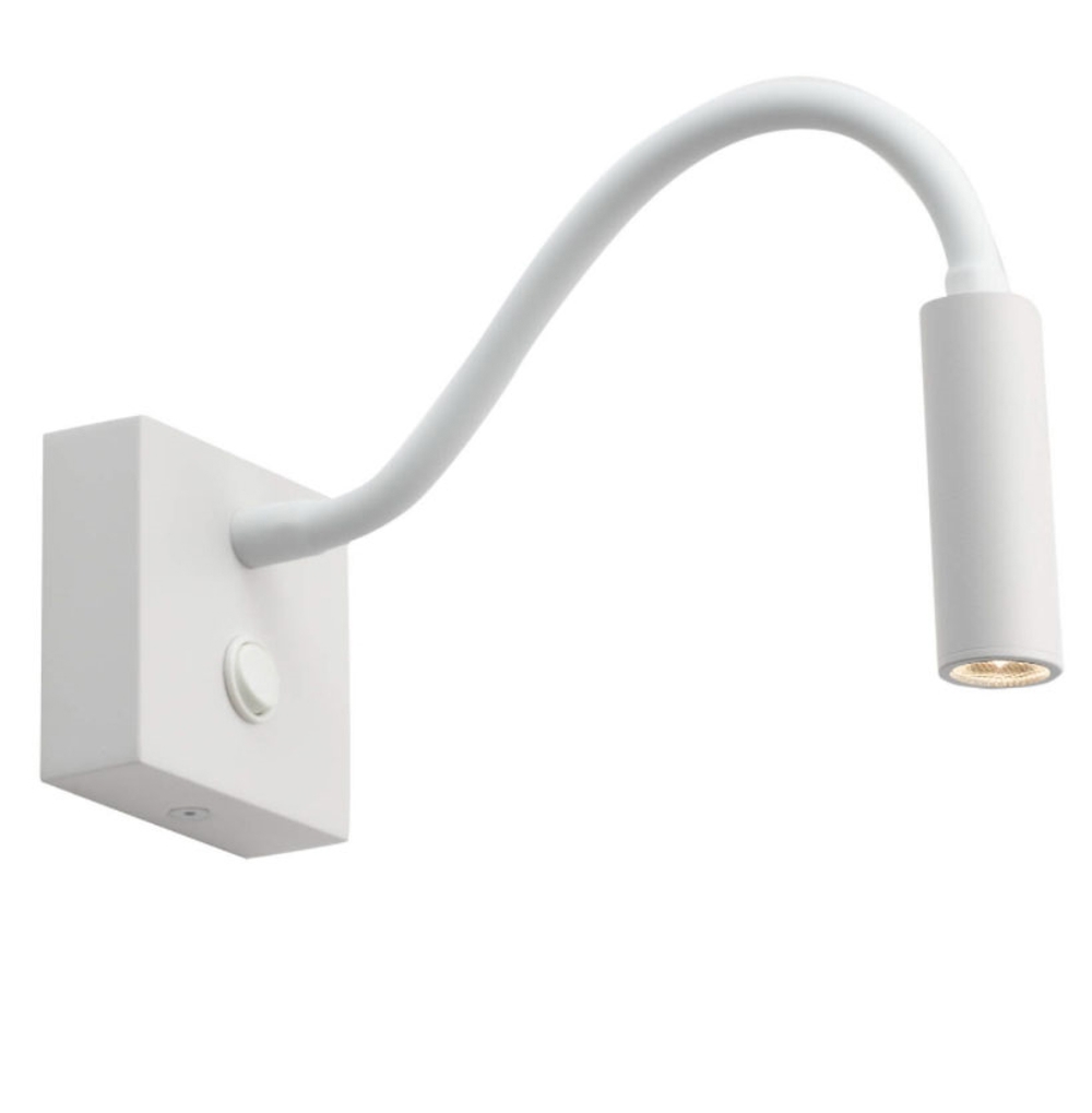 De wandlamp heeft een aan/uit schakelaar - en zoals de naam al aangeeft, een flexibele arm die in elke gewenste positie kan worden ingesteld.
