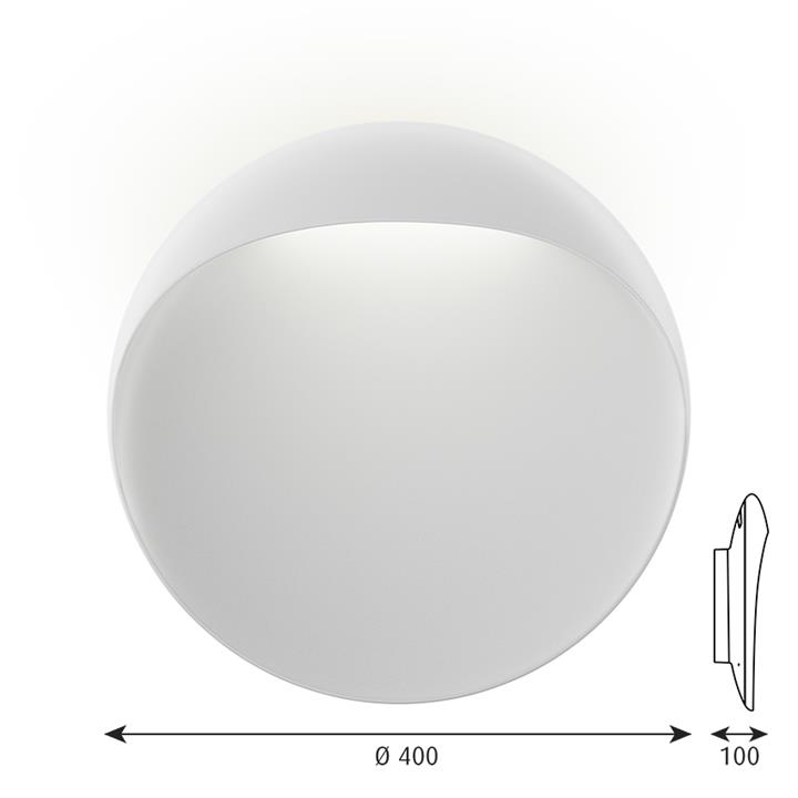 Flindt wandlamp heeft een functioneel en eenvoudig ontwerp in een perfecte cirkel. Het licht wordt ook uitgestraald vanuit een opening aan de bovenkant van de lamp, wat een gloeiende ring van gereflecteerd licht creëert terwijl het een asymmetrisch, naar beneden gericht licht geeft.