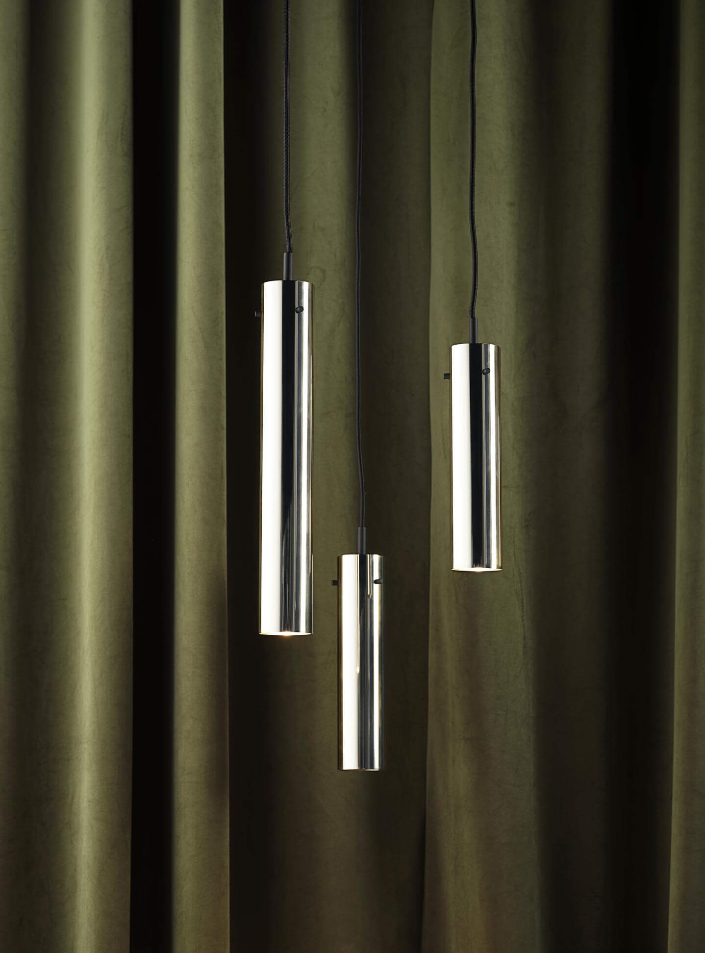 FM2014 hanglampen H24 en H36, glanzend staalFM2014 hanglampen H24 en H36, glanzend staal