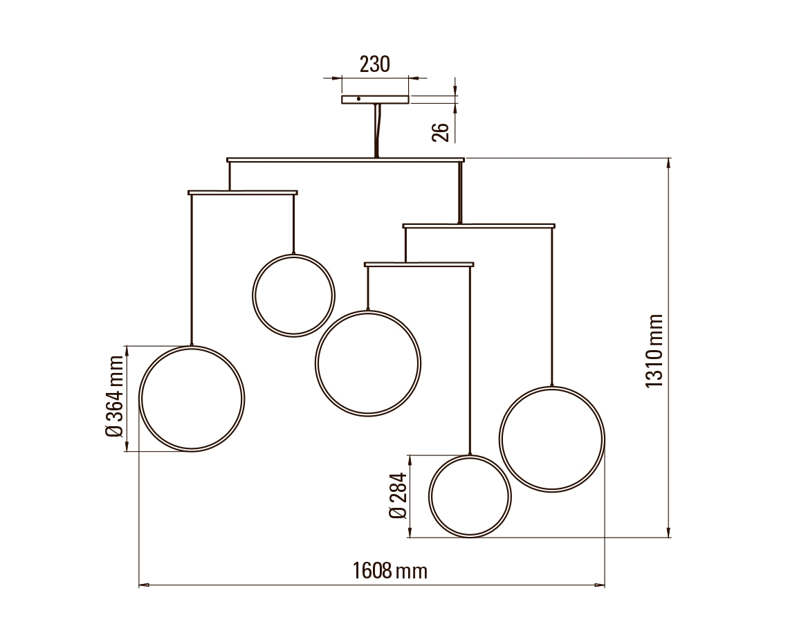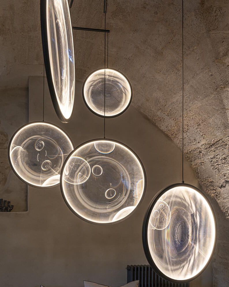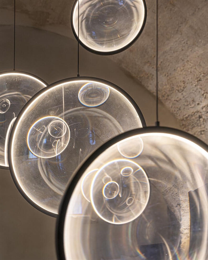 Deze zeer elegante hanglamp bestaat uit 5 verlichte schijven gemaakt van acrylglas. Het glas geeft een unieke uitstraling en samen met de geometrische vormgeving van de lamp trekt het ook de aandacht in de ruimte.