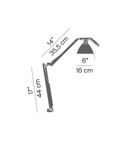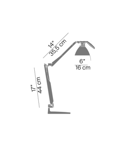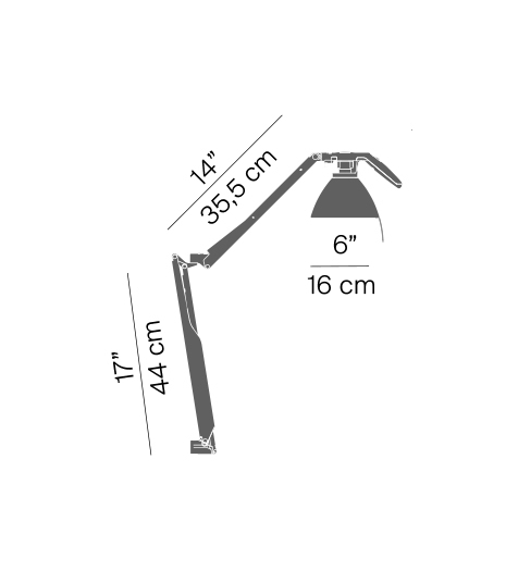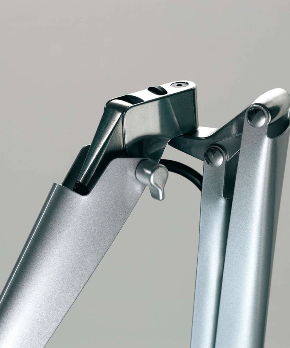 De praktische en robuuste Fortebraccio lamp kan worden gebruikt als een functionele bureaulamp of aan de muur worden gemonteerd als een effectieve werkverlichting. Een flexibel scharnier tussen de onderarm en bovenarm betekent dat de twee armen onafhankelijk van elkaar zowel horizontaal als verticaal kunnen draaien. De aan/uit-knop is geplaatst op de praktische greep boven de kap, waardoor het mogelijk is om de lichtinval eenvoudig en nauwkeurig aan te passen.