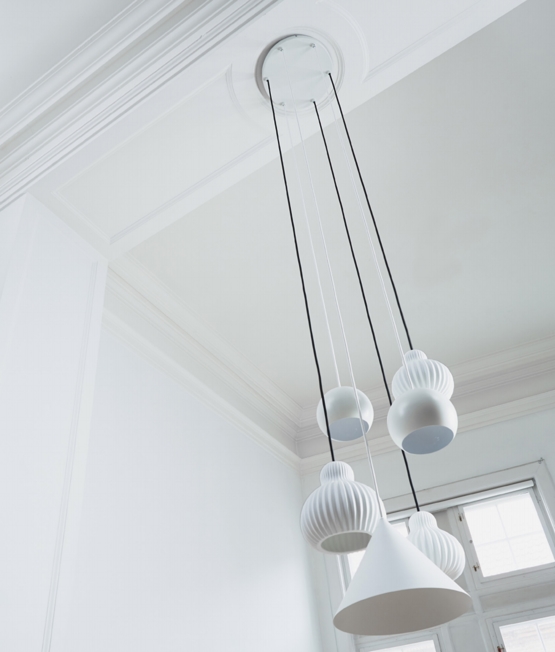 Baldakijn in mat wit voor 6 hanglampen, die in een mooie cluster kunnen hangen.
