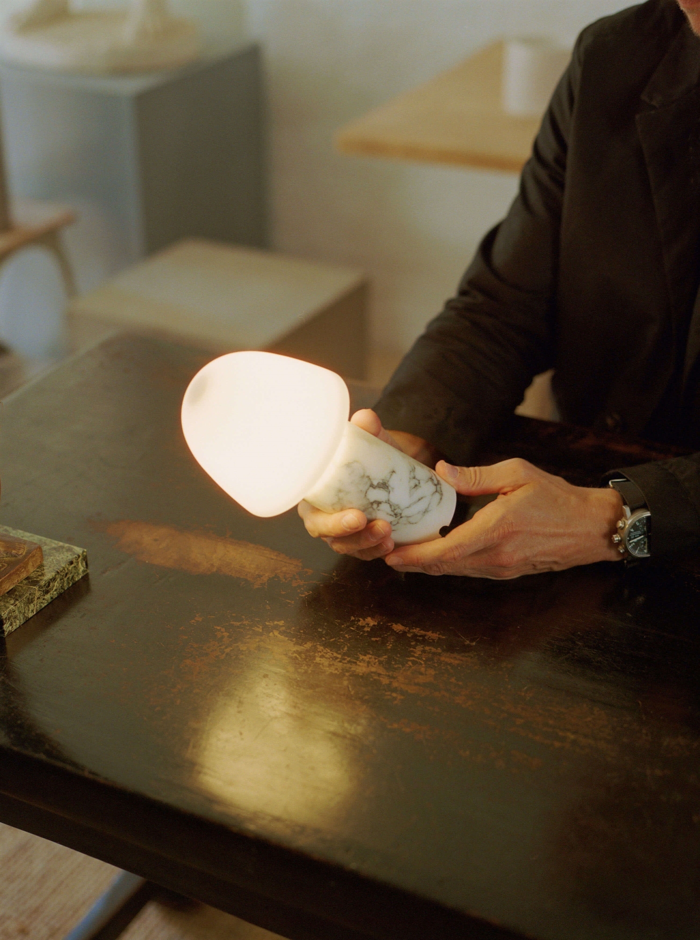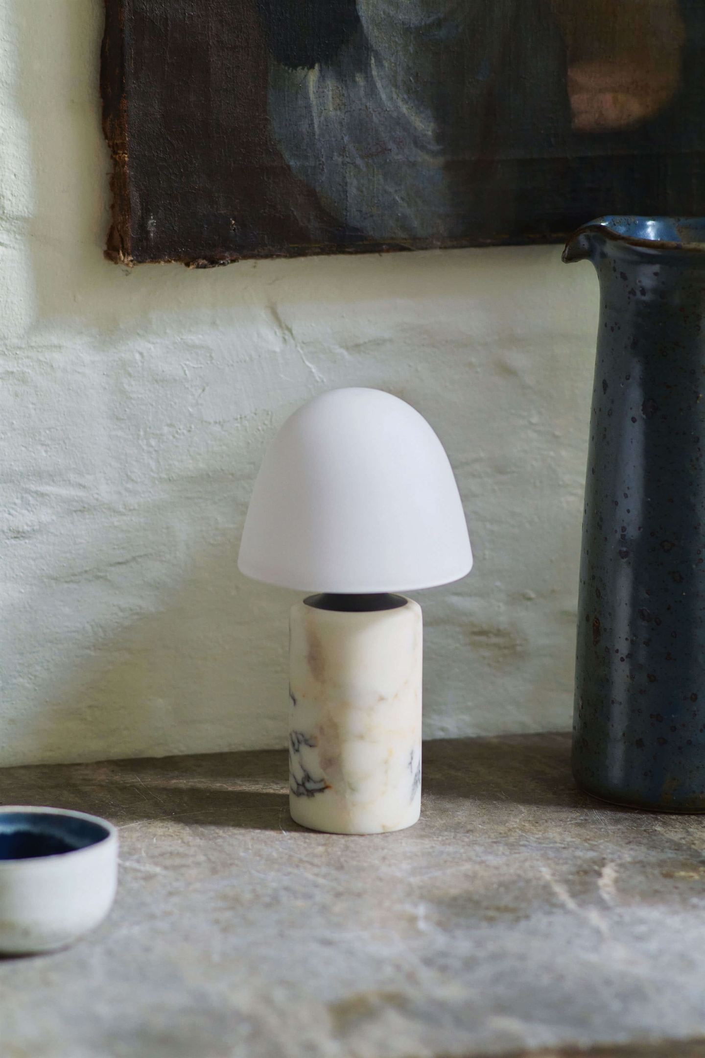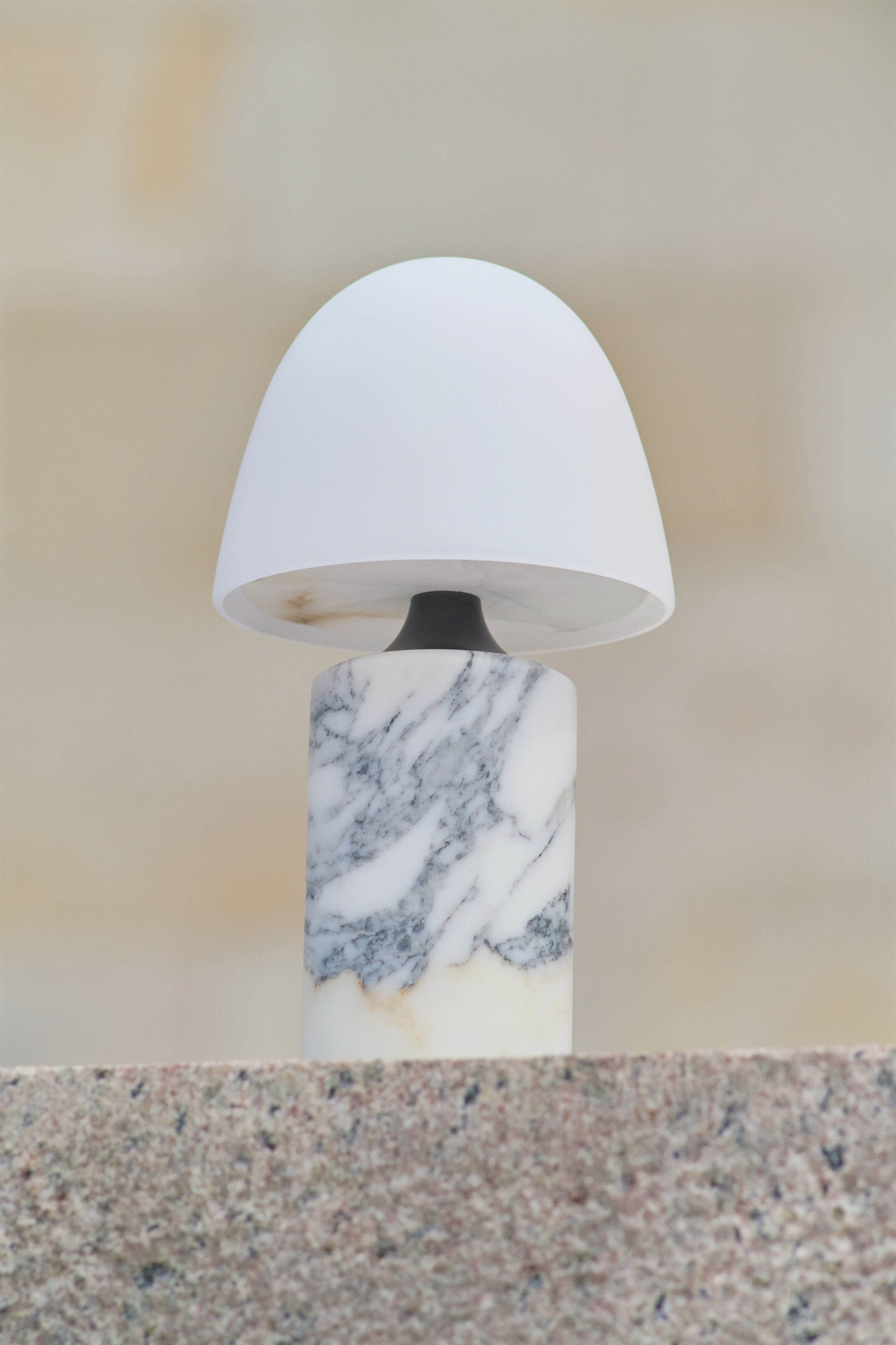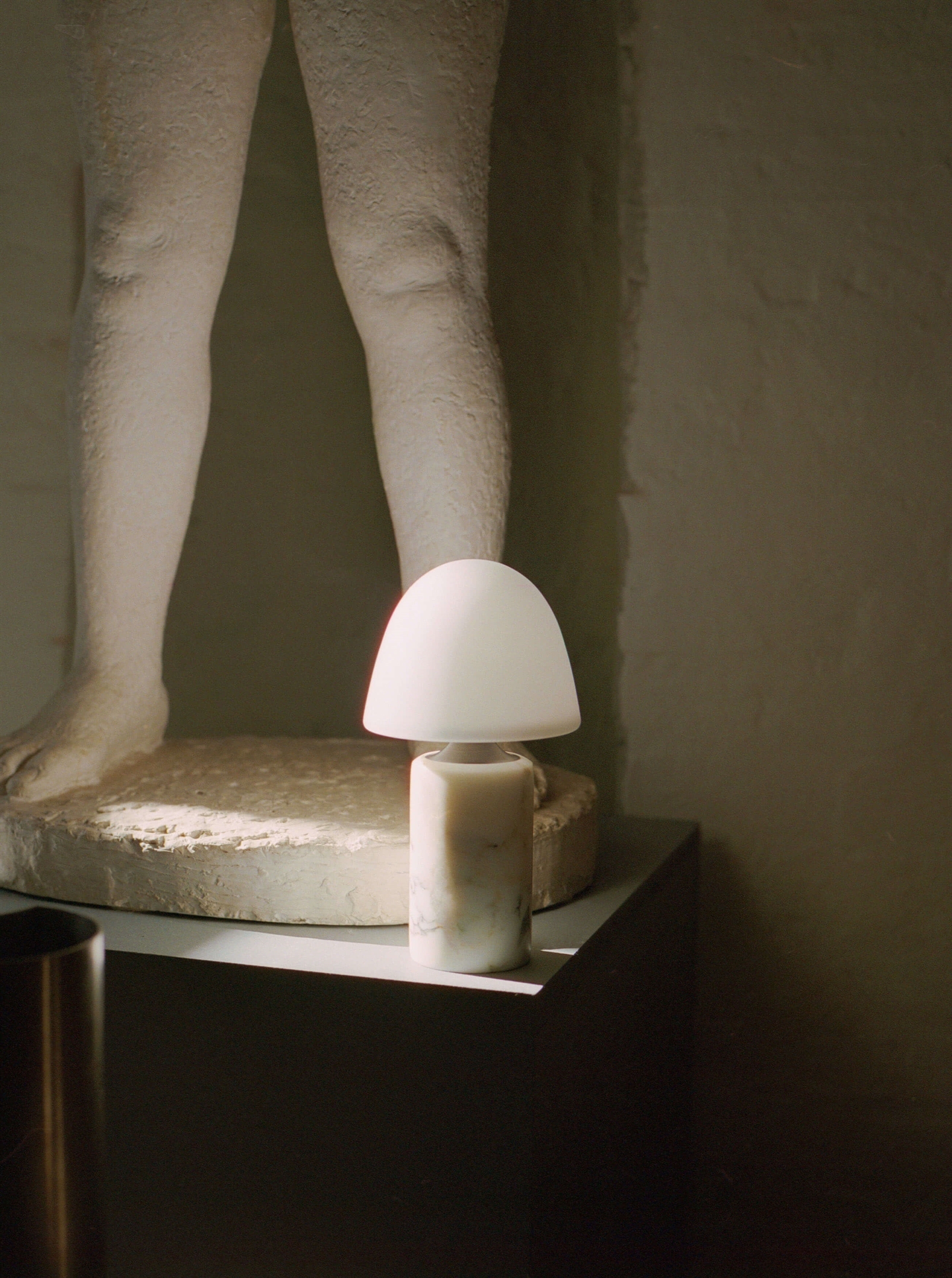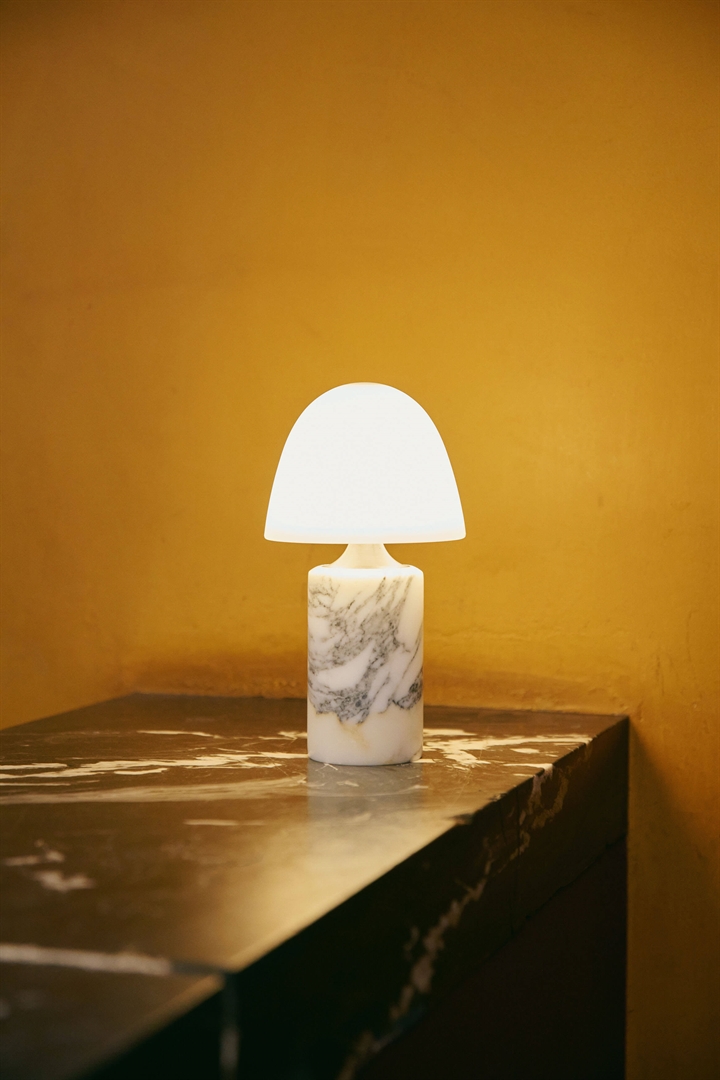 Made by Hand Fuse Portable batterijlamp/tafellamp in marmer, gebronsd messing, opaalglas en albast - ontworpen door Groundwork Studio
