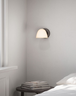 Made by Hand Fuse Single wandlamp in gebronsd messing, opaalglas en albast - ontworpen door Groundwork Studio