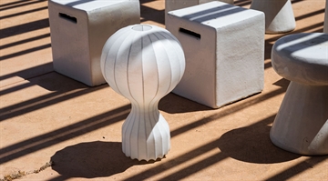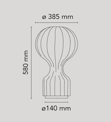 Gatto heeft een organische en zachte vorm die een warm en diffuus licht geeft, ideaal om een aangename sfeer te creëren in zowel privé- als professionele ruimtes. Het karakteristieke oppervlak van de lamp is gevormd rond een interne structuur, wat een bijna papierachtig uiterlijk geeft dat de ruimte een gevoel van rust en lichtheid geeft.