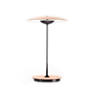 Ginger 20 M is een draagbare tafellamp met een houten kap die slechts 4 mm dik is. Het frame is van aluminium en er is een ingebouwde 3,2 watt LED-lichtbron - en hij kan op 3 lichtniveaus worden ingesteld.