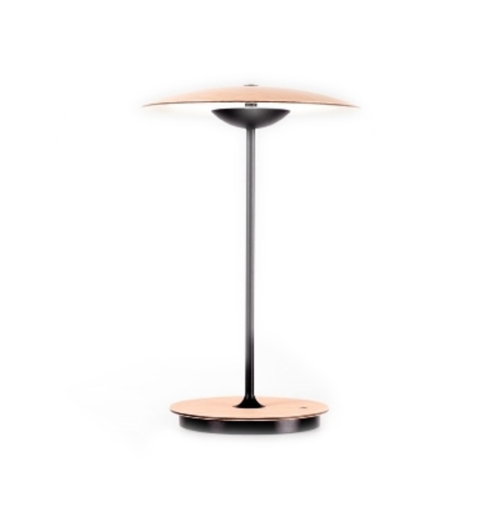 Ginger 20 M is een draagbare tafellamp met een houten kap van slechts 4 mm dik. Het frame is van aluminium en er is een ingebouwde 3,2 watt LED-lichtbron - en hij kan op 3 lichtniveaus worden ingesteld.