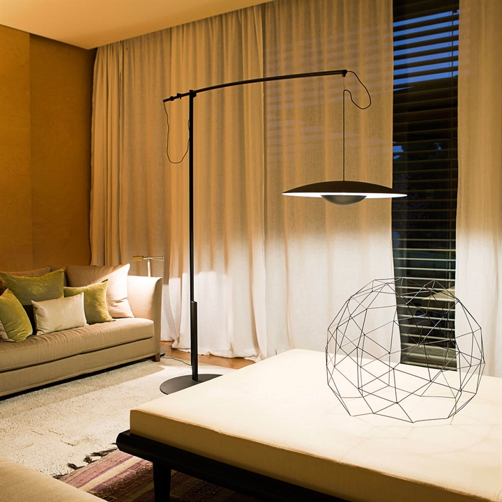 Ginger XXL vloerlamp heeft een fantastisch en functioneel ontwerp, omdat hij zowel als vloerlamp als hanglamp kan worden gebruikt.