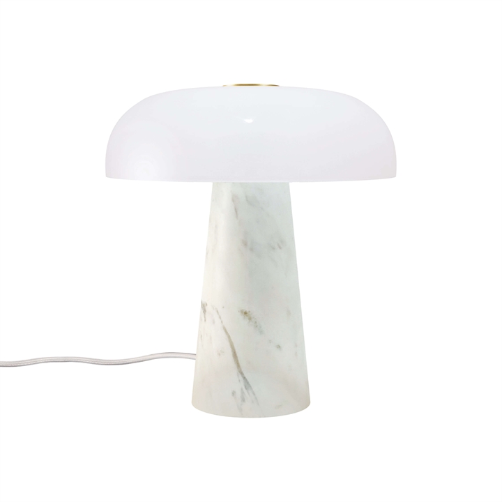 Glossy Mini is een elegante tafellamp met een prachtige marmeren voet en top van geborsteld messing. De lamp is ontworpen door de Deense designer Maria Berntsen, die een minimalistisch Scandinavisch design wilde creëren met gebruik van hoogwaardige materialen, waardoor elke lamp uniek is.