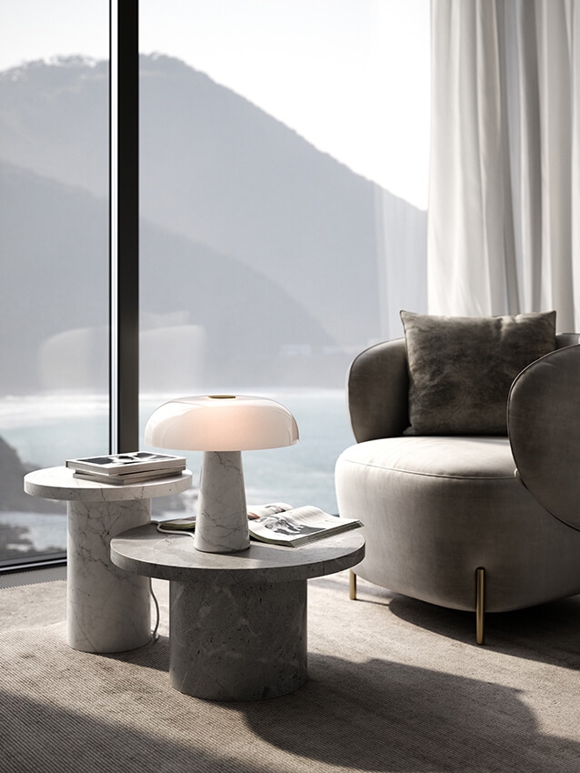 Glossy is een elegante tafellamp met details in geborsteld messing en een prachtige marmeren voet, verkrijgbaar in zowel grijs als wit. De tafellamp is ontworpen door de Deense Maria Berntsen, die een minimalistisch Scandinavisch design wilde creëren. Tegelijkertijd met het gebruik van goede materialen, waardoor elke lamp uniek is.